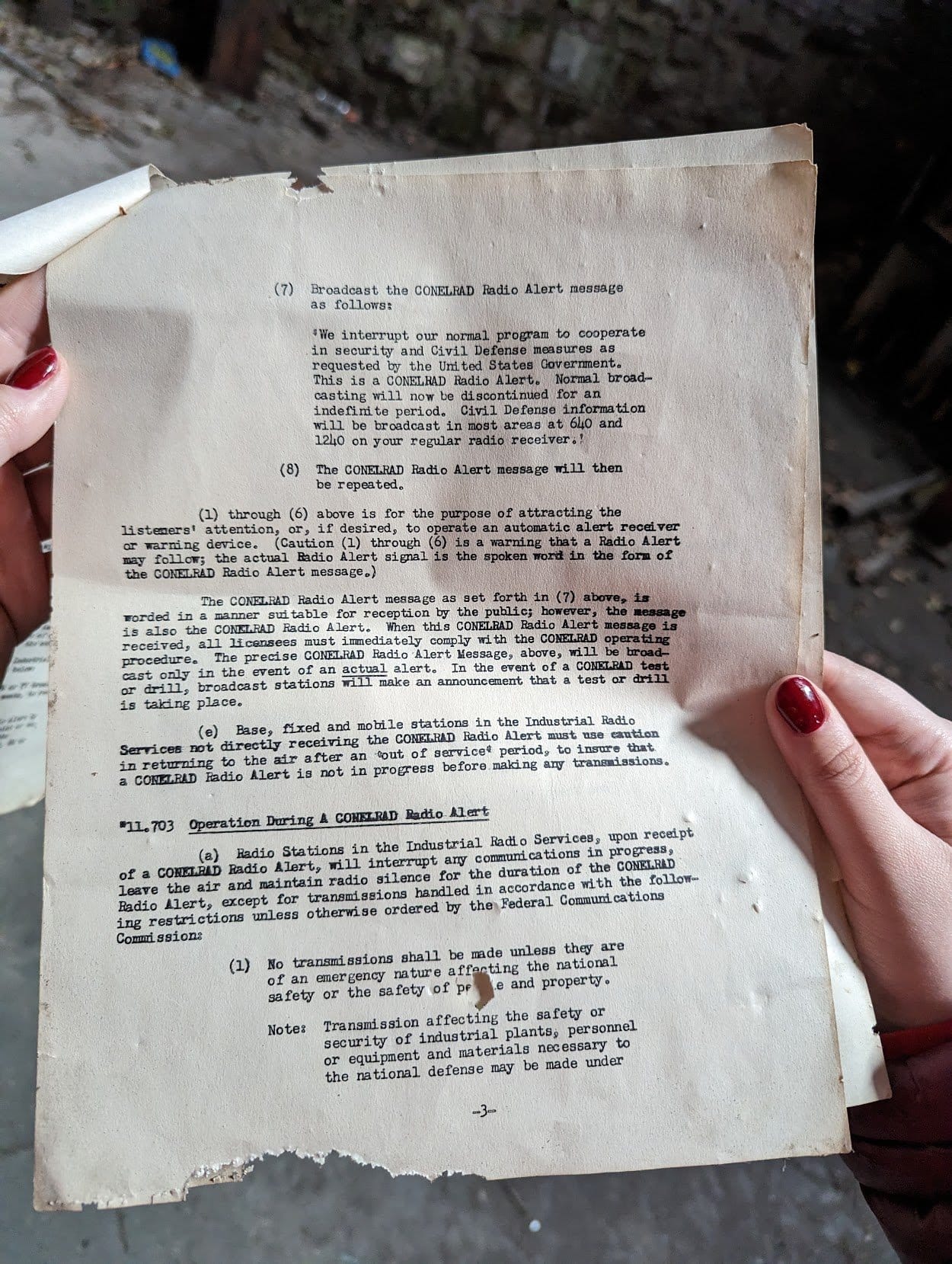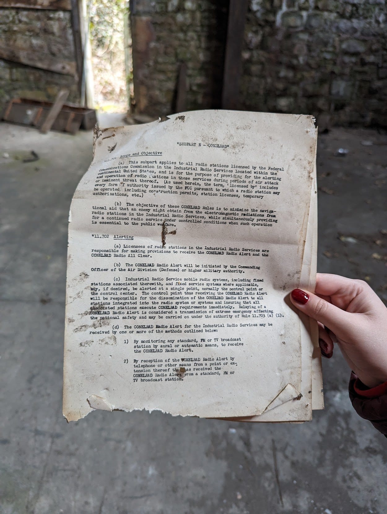 In a small adjoining room to the main turbine hall, we came across some old instructions for CONELRAD emergency broadcasts.