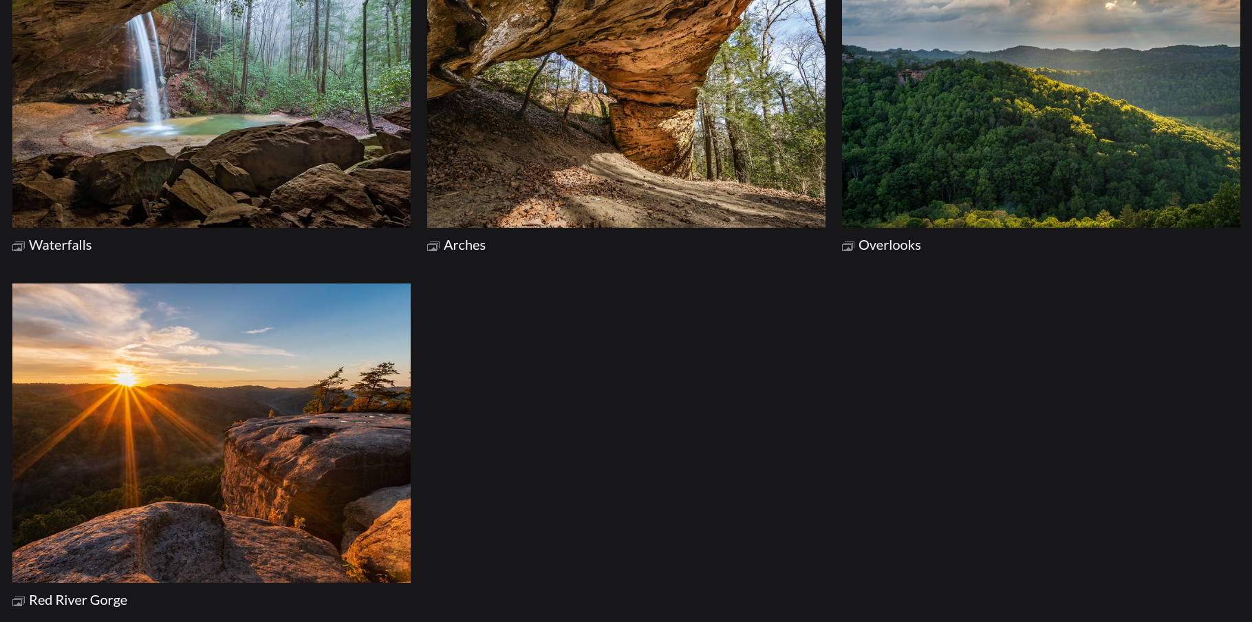 The portfolio is arranged into galleries, similar to the old one. One big change, however, is that there is now a lot more organization. For example, my Kentucky gallery, which has a ton of content, is now further divided into sub-categories to make it easier to find what you're looking for.