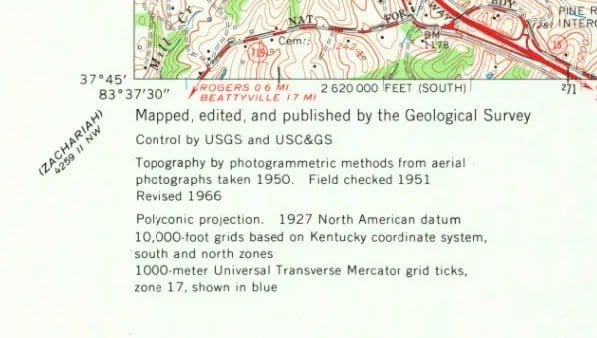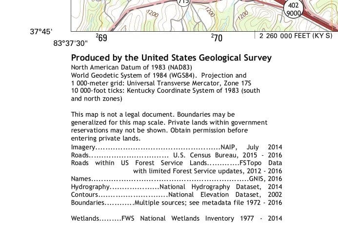 As with much of this article, I will primarily focus on the USGS maps. On these maps, you can find the datum the map uses in the lower left-hand corner.