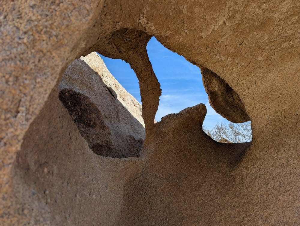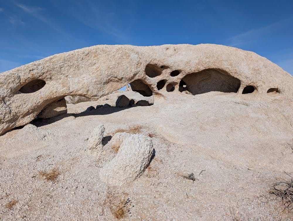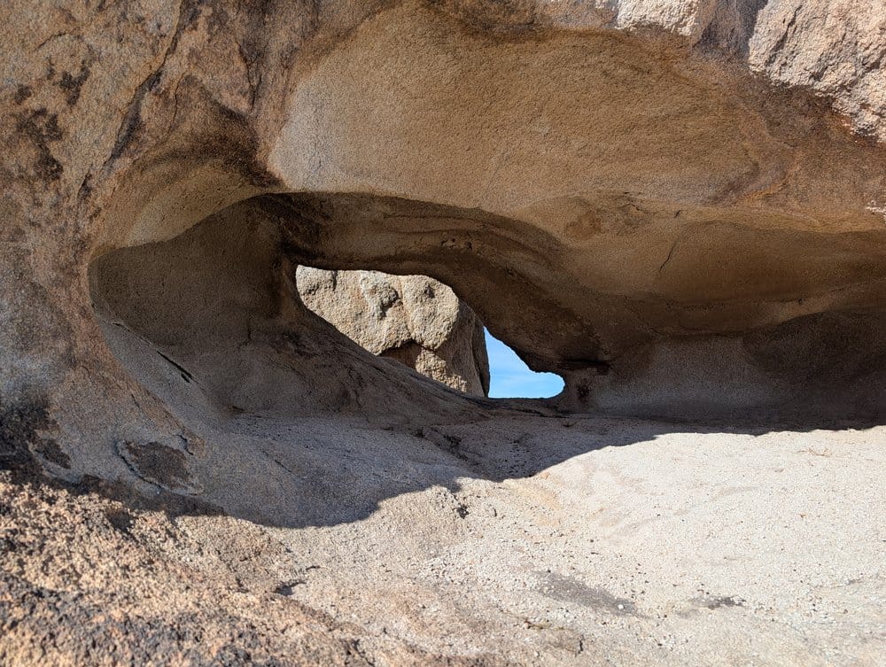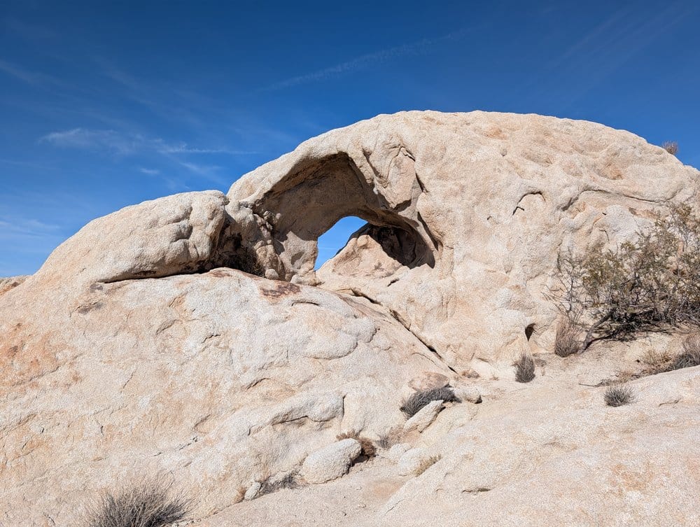 Eventually, I came across a blog whose author spends quite a bit of time in Joshua Tree, and most of his adventures are right up my alley. As such, I spent some time scrolling through this blog when I came across a post where the author is pontificating about the prettiest arch in Joshua Tree. This is where I first came across a picture of Ojo Oro Arch (Spanish for Golden Eye Arch).